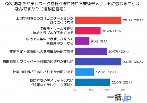 ・ 調査3:テレワークに感じる不安やデメリットは?