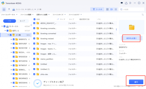 フォルダの誤削除は誰にでも起こりうるトラブルですが、適切な知識と迅速な対応があれば多くの場合で復元が可能です。まずは簡単な方法から試し、それでもフォルダを復元できない場合はデータ復元ソフト「Tenorshare 4DDiG」の使用を検討しましょう。