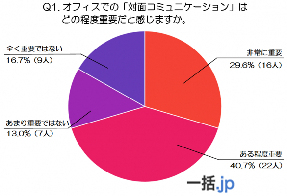 調査結果1:オフィスでの「対面コミュニケーション」はどの程度重要だと感じますか。