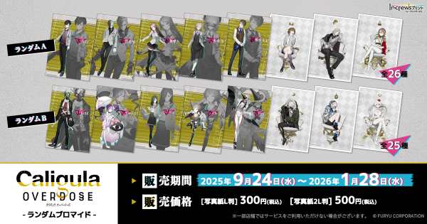 株式会社インクルーズ(東京都渋谷区、代表取締役社長 山? 健司)は、9月24日(水)より、日本全国のコンビニエンスストア店内のマルチコピー機を中心に、気軽にプリントできる「インクルーズプリント by eプリントサービス」にて、学園ジュブナイルRPG「Caligula Overdose/カリギュラ オーバードーズ」のコンテンツプリントがランダム式で販売開始したことをご報告させていただきます。