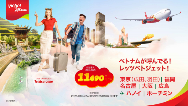 (東京, 2025年9月24日) - ベトジェットは中秋節を記念して、日本とベトナムを結ぶ路線、およびベトナム国内・国際線で利用できる数十万枚ものエコチケットが片道わずか11,690円(税・手数料込)からになるチケットプロモーションを実施します。このチケットプロモーションは2025年9月24日午前02:00から9月27日午前01:00(日本時間)まで開催され、対象搭乗期間は2025年10月20日から2026年5月27日まで(*)です。エコチケットはベトジェット公式サイト https://www.vietjetair.com またはベトジェットエアモバイルアプリからご予約いただけます。日本人旅行者の皆様は、ハノイやホーチミンから、ベトナム屈指のビーチリゾートであるフーコック、ニャチャン、ダナンを訪れることができ、またベトナムを経由してアジア太平洋地域の活気ある国際都市へも足を伸ばすことができます。