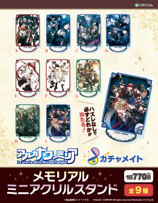アニメイト通販「ガチャメイト」に 『アルカナ・ファミリア』のメモリアルミニアクリルスタンドが登場! 歴代シリーズのパッケージイラストを使用した全9種がラインアップ! ハズレなしで必ずどれか当たります!