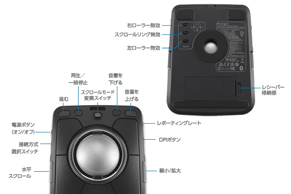 ● KensingtonKonnect(TM)により、ボタン機能割当やスクロール等のカスタマイズが可能。