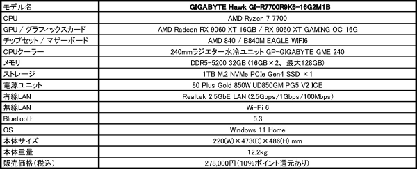 GIGABYTE、AMD Ryzen 7 7700とRadeon RX 9060 XTを搭載したヨドバシカメラ専売ゲーミングデスクトップPC「GIGABYTE Hawk」発売