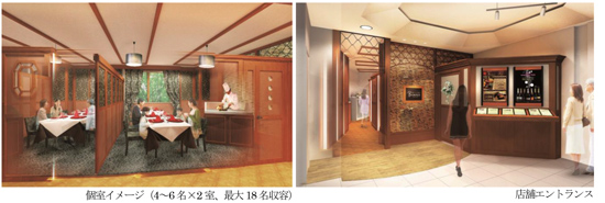 千里阪急ホテル(豊中市新千里東町2-1 総支配人 田岡 弘志)では、鉄板焼・フレンチ・和洋会席のレストラン「ボナージュ」にて、個室2室を増設し、店舗エントランスを一新いたします。