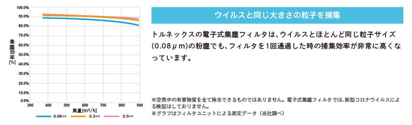 2. 電子式集塵フィルタはウイルスサイズ粒子もしっかり捕集