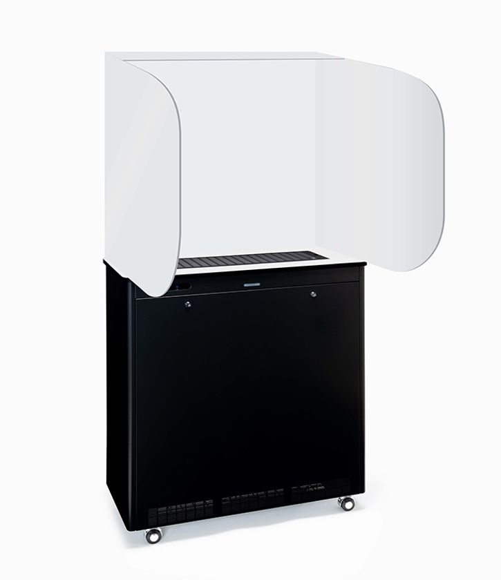 そこでトルネックスでは、PCR検体採取時の飛沫飛散防止対策として検査体制の整備としていただける「検体採取用換気装置」を発売いたします。検体採取用換気装置は目詰まりせず、ほぼ風量が変らない電子式集塵フィルタを活用。15立方メートル/minの大処理風量で浮遊ウイルスを捕集し、空気をスピード浄化する換気補助システム装置です。着席での検体採取にご使用いただけるロータイプと、立位でご使用いただけるハイタイプの2種をご用意。施設の環境に応じてお選びいただけます。