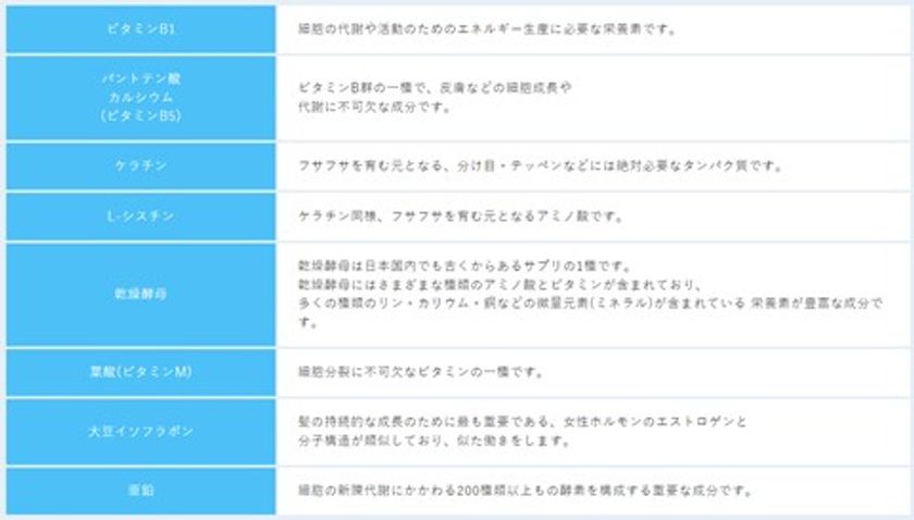 栄養の不足や偏りは薄毛の原因の1つですが、バランスのいい食事だけでは薄毛の対策にはつながりません。栄養は体のすべてのエネルギー代謝に必要なものなので、先に基礎代謝に使われてしまい、充分な栄養や一見過剰とも思えるほどの栄養を摂らないと髪の毛までに行き渡らないからです。そのためサプリメントは必要な栄養を補うためにも継続して飲むことで効果を期待することが可能となります。