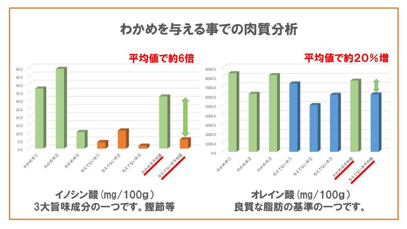 ・3大旨味成分の一つであるイノシン酸が6倍。おいしい脂の指標であるオレイン酸が約20%増加。