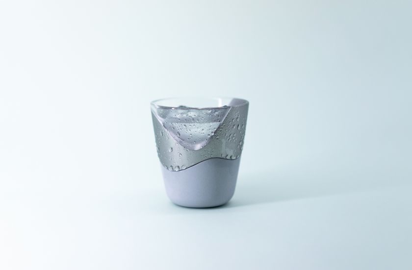 KARARAは鋳鉄部と樹脂部で生まれた水滴を珪藻土でできた底部がスッと吸いとってくれます。冷たい飲み物を入れたとき、カップの表面には結露が生まれます。結露は清涼感など視覚的な美味しさで食を演出しますが、水滴が手やテーブルについてしまうわずらわしさがあります。