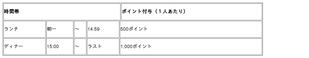 1,000円(税込)以上が条件>。ただし、お持ち帰りでもポイント利用は可能。また、プレミアム付食事券については、参加していないため