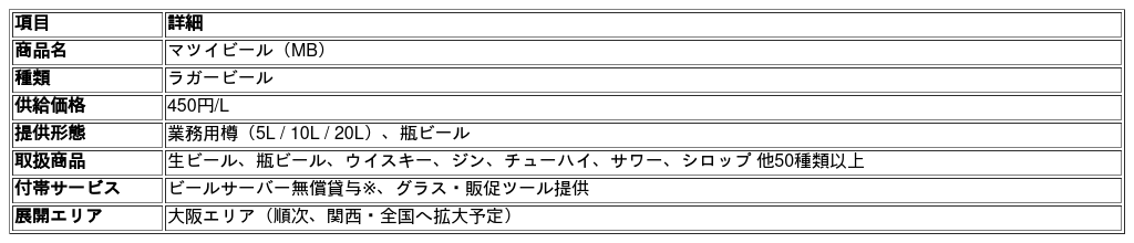 松井酒造合名会社(本社:鳥取県倉吉市)は、総合酒類メーカーとしての新たな挑戦として、業務用ビール「マツイビール(MB)」を大阪エリアの飲食店様向けに本格展開いたします。