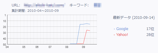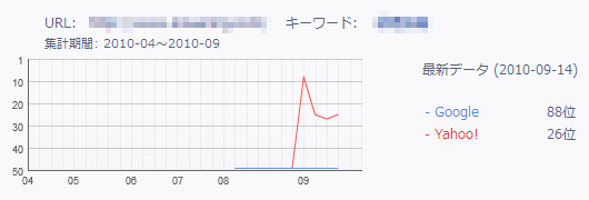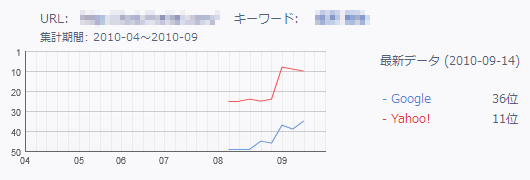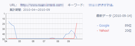 ※下記は2010年8月に当サービスを利用したサイトの順位変化です。